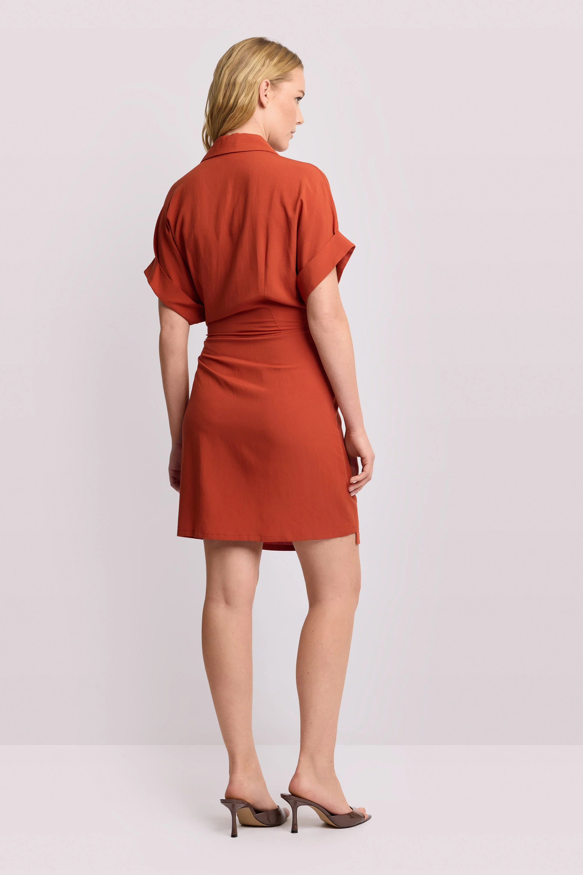 - Abito corto a portafoglio con scollo a V