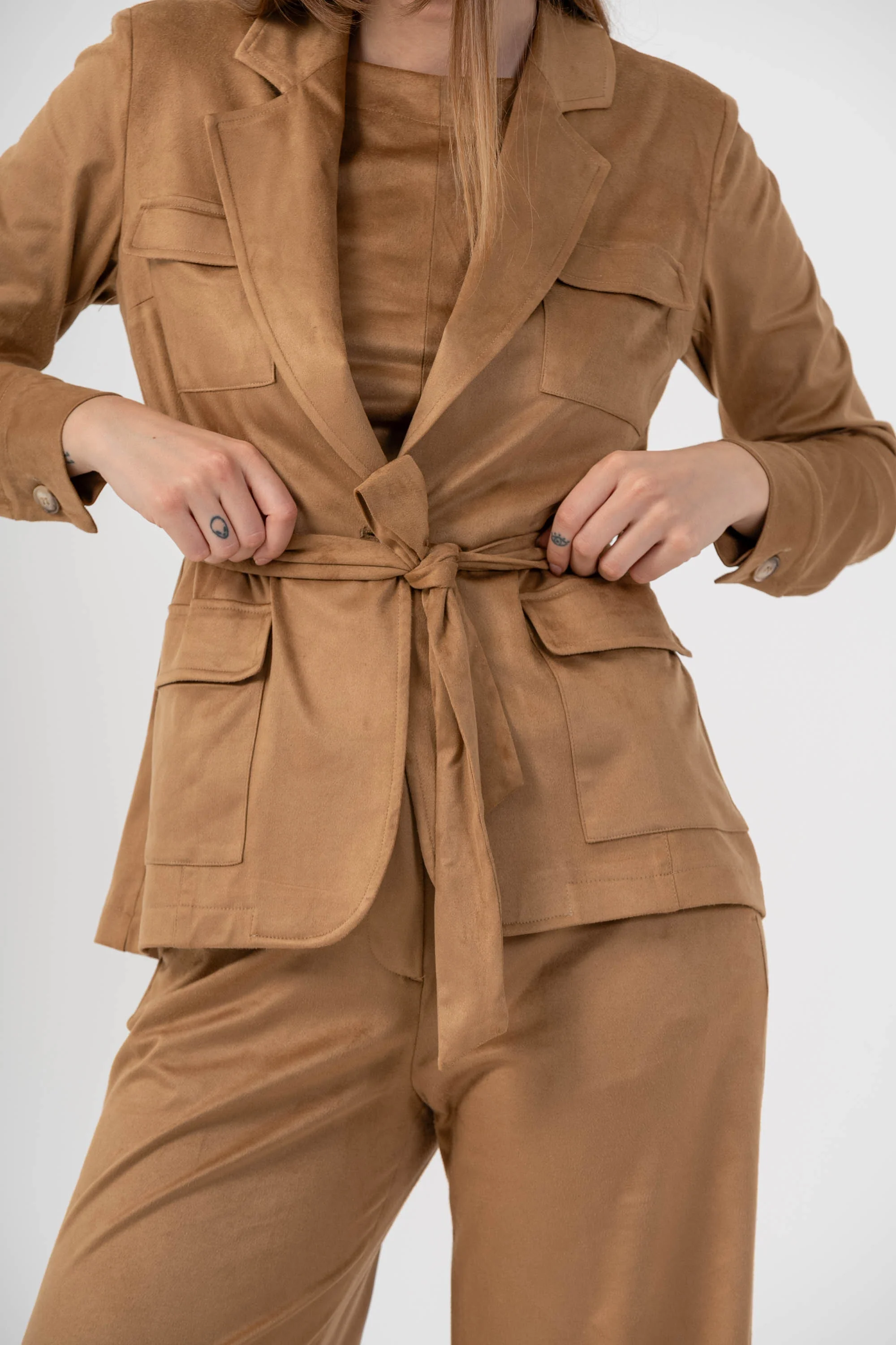 Giacca effetto suede con tasche e cintura - Giacca BAMBIX