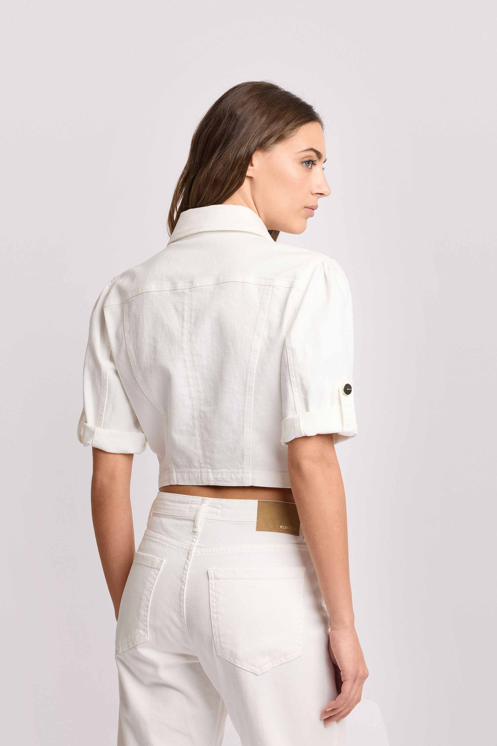 - Taglio cropped moderno che lascia scoperto il punto vita