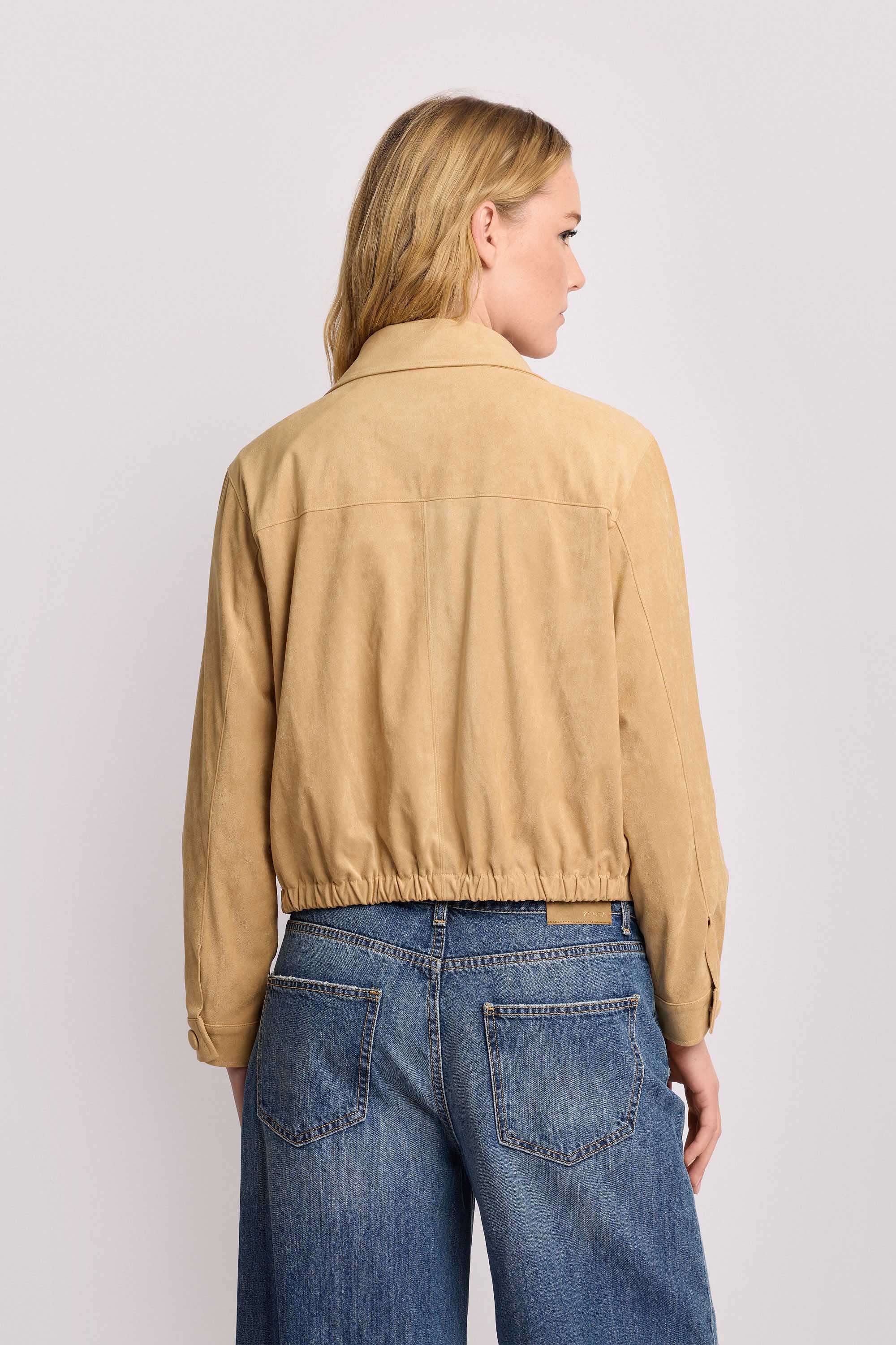 - Giubbino con colletto classico a camicia e chiusura frontale con eleganti bottoni ricoperti