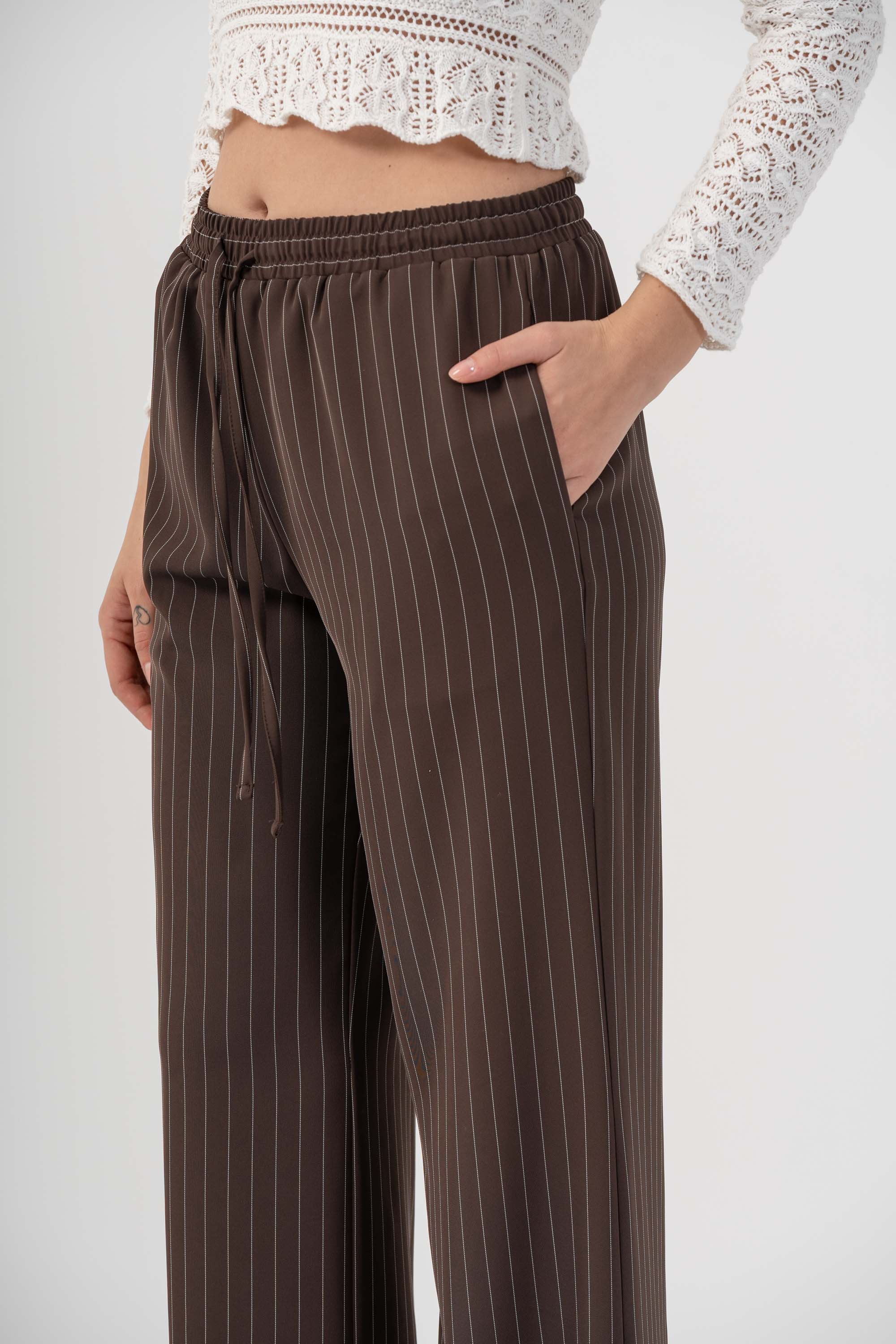 - Pantaloni fluidi in tessuto fantasia gessata verticale